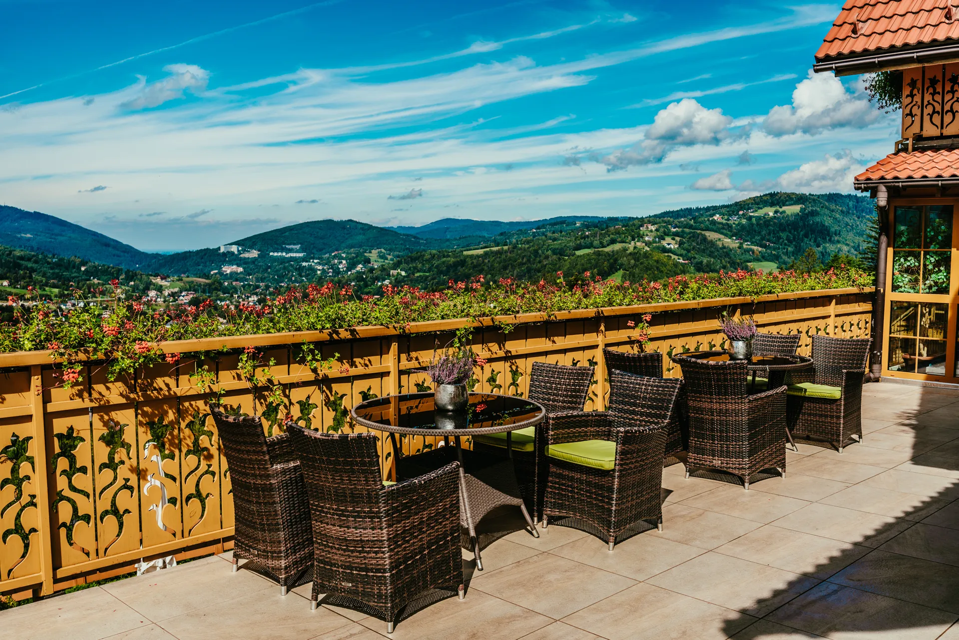 Całoroczne spa na świeżym powietrzu, wyposażone w komfortowe meble ogrodowe i oferujące widok na góry. Usługa jest skierowana do Gości szukających relaksu i regeneracji oraz podnosi atrakcyjność obiektu.
