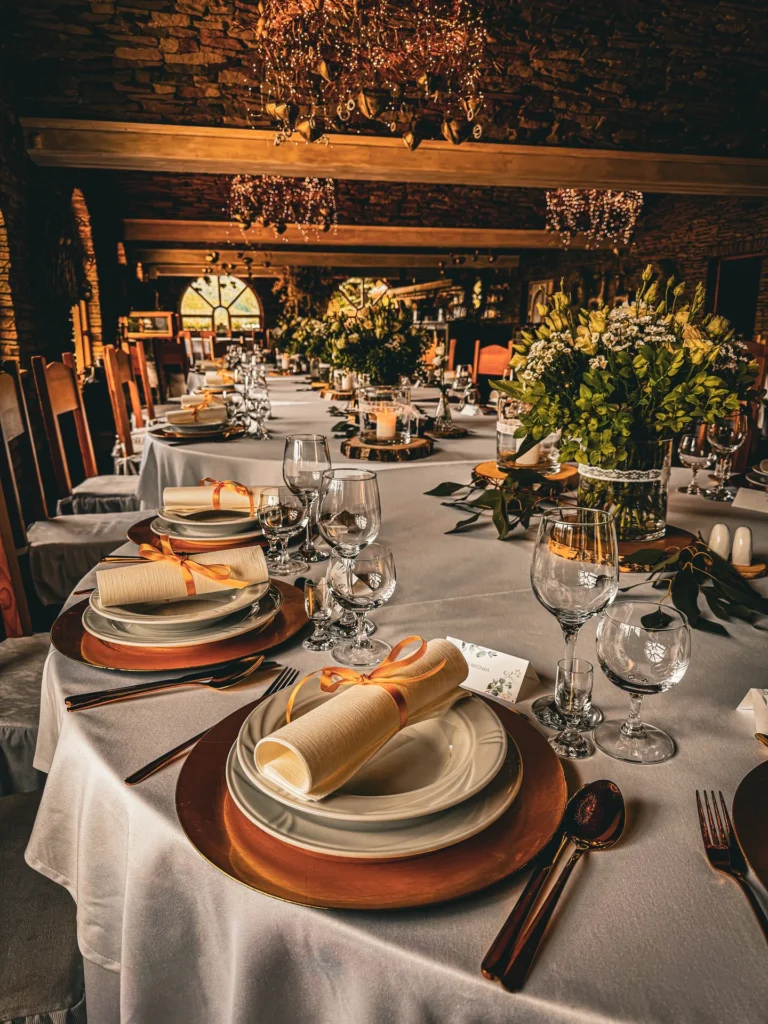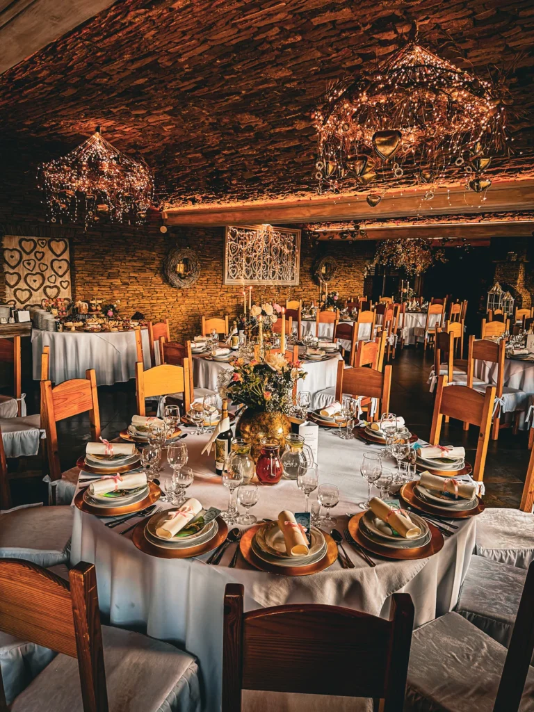 Będziecie świętować w eleganckiej sali, która pomieści do 190 Waszych gości. Ma kamienny charakter z dużymi oknami i widokiem na góry.